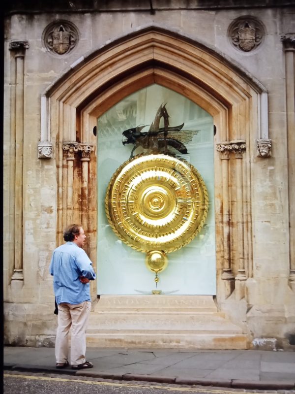 From there, we walked to the Corpus Clock, an eye-catching and somewhat unsettling installation. Its grasshopper-like “Chronophage” creature dramatically marked the passage of time, drawing crowds of intrigued onlookers. A short walk further brought me to the Round Church, one of the oldest buildings in Cambridge. Its circular Norman design provided a stark contrast to the surrounding Gothic and modern structures.