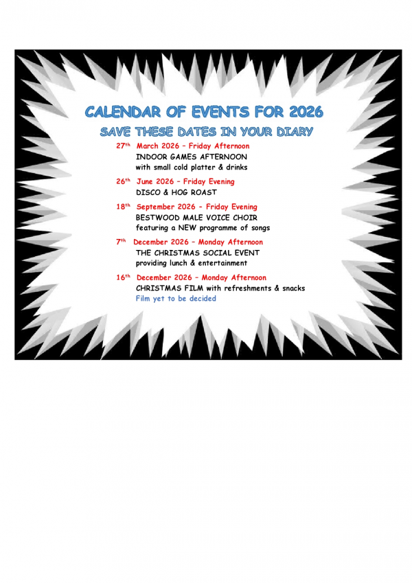 A date for your diary: The Christmas Lunch for 2026 is on Monday 7th December.